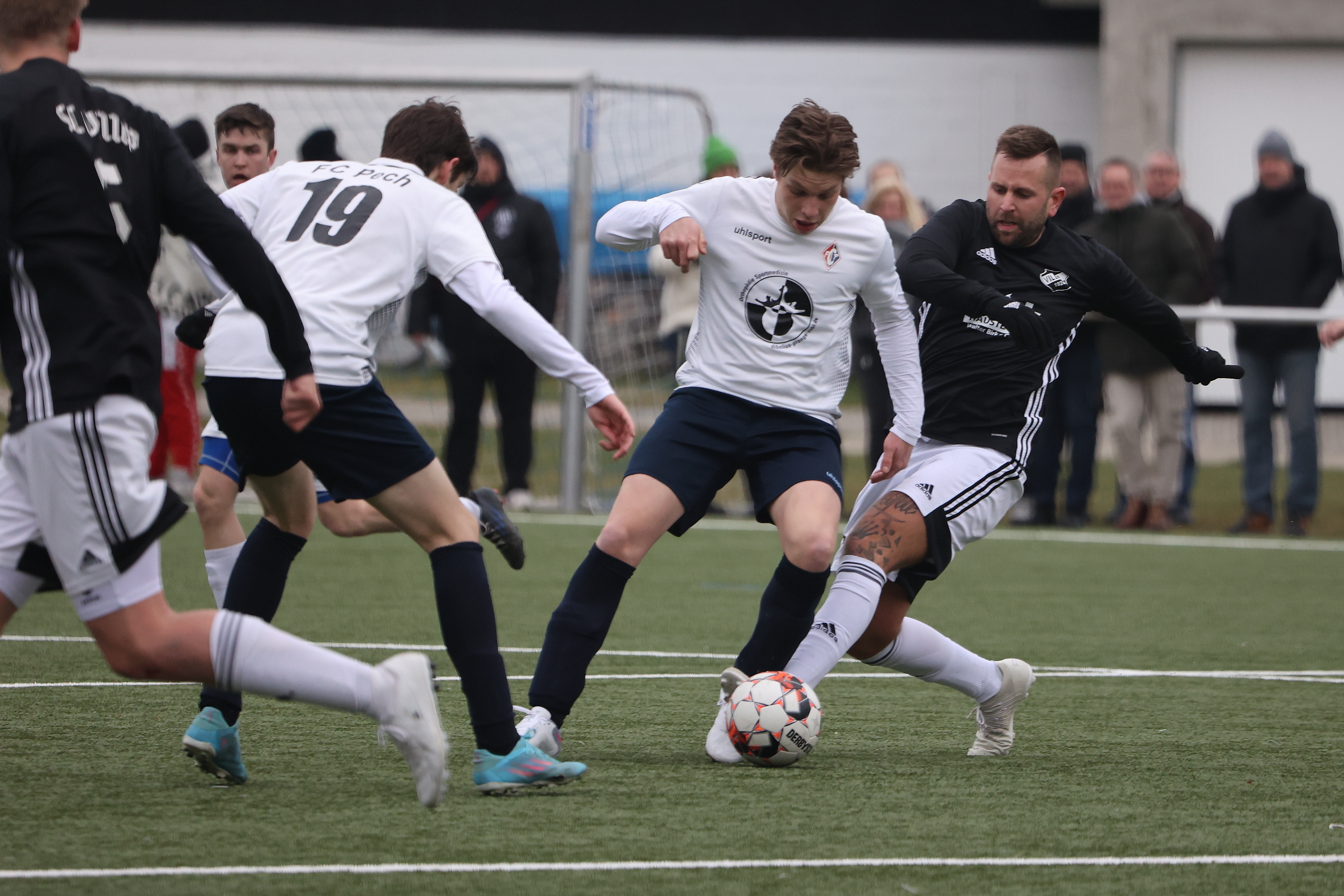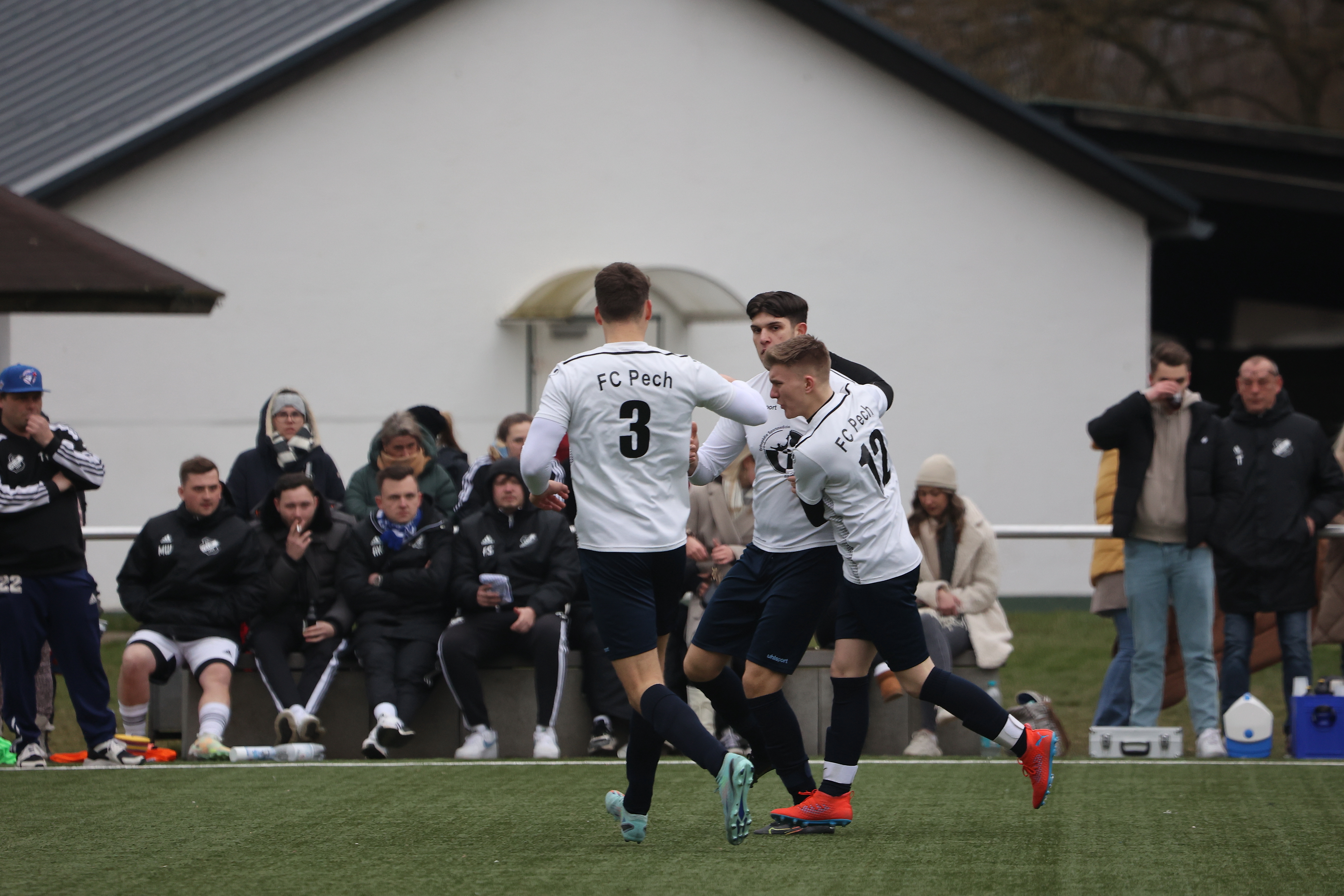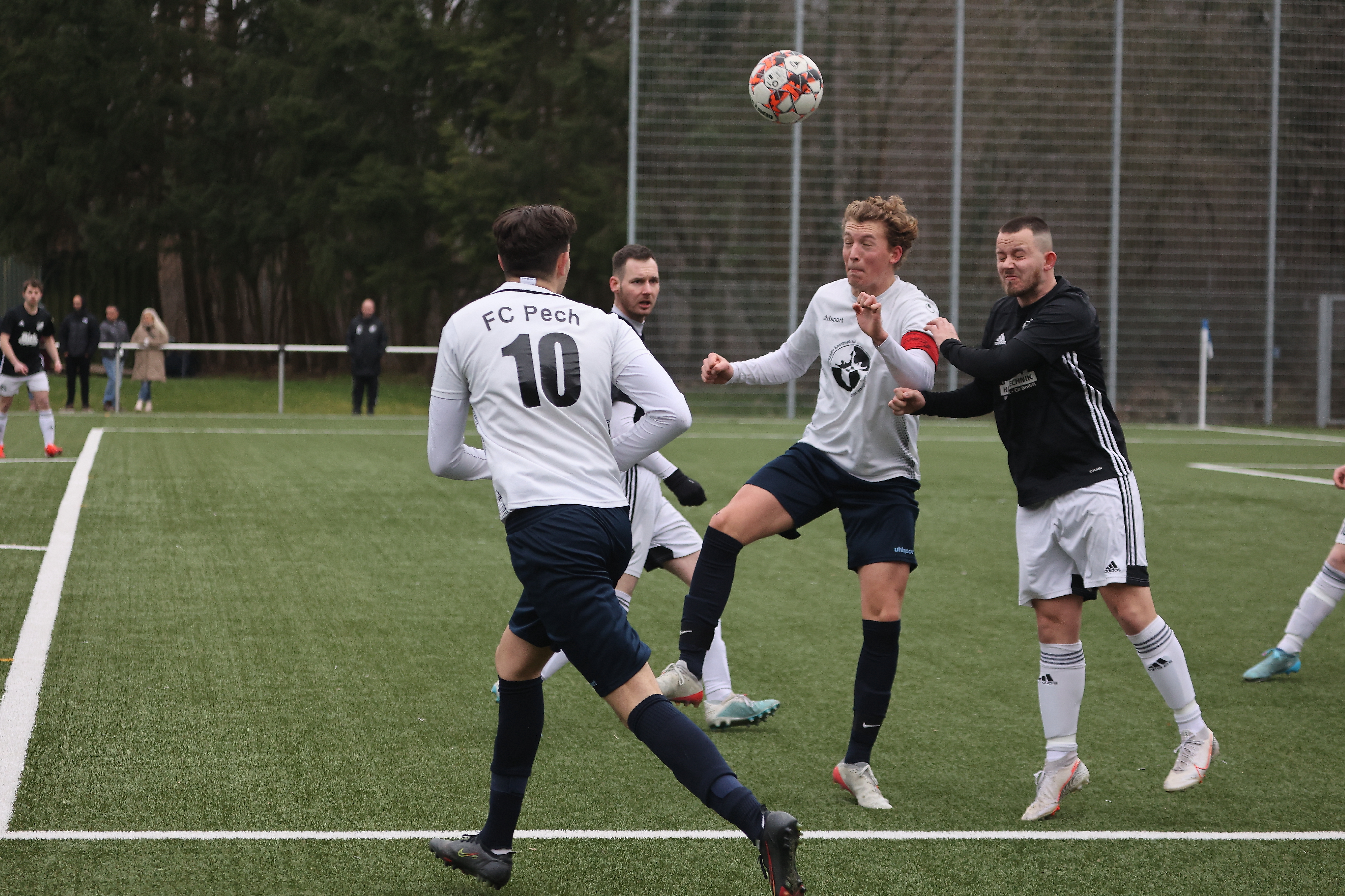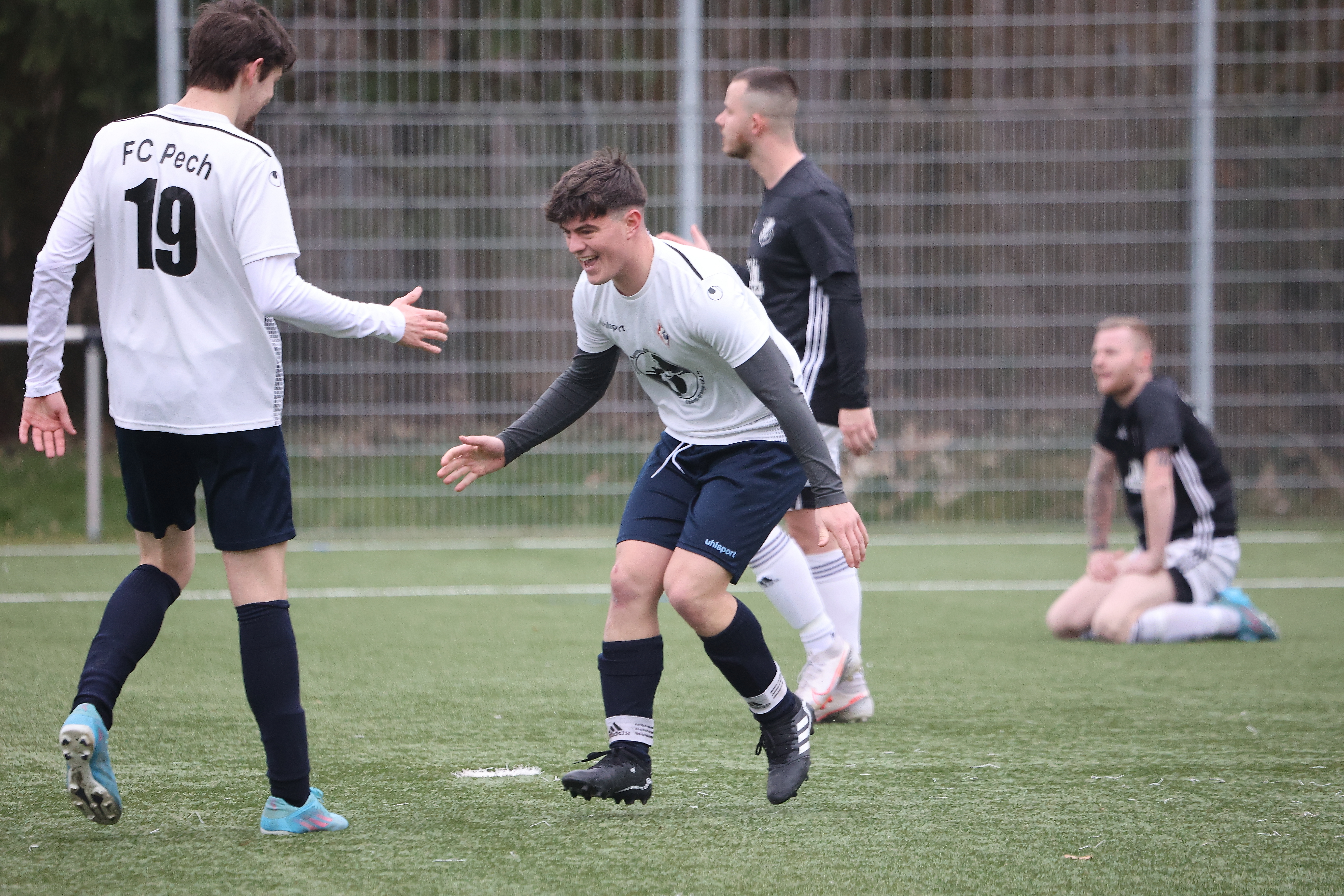 Zunächst gewann die zweite Mannschaft des FC Pech mit 2:0 gegen die Hausherren und bleiben damit dicht hinter Tabellenführer Lessenich im Rennen um den direkten Aufstieg. Beide Tore erzielte Justin Eckstein.
