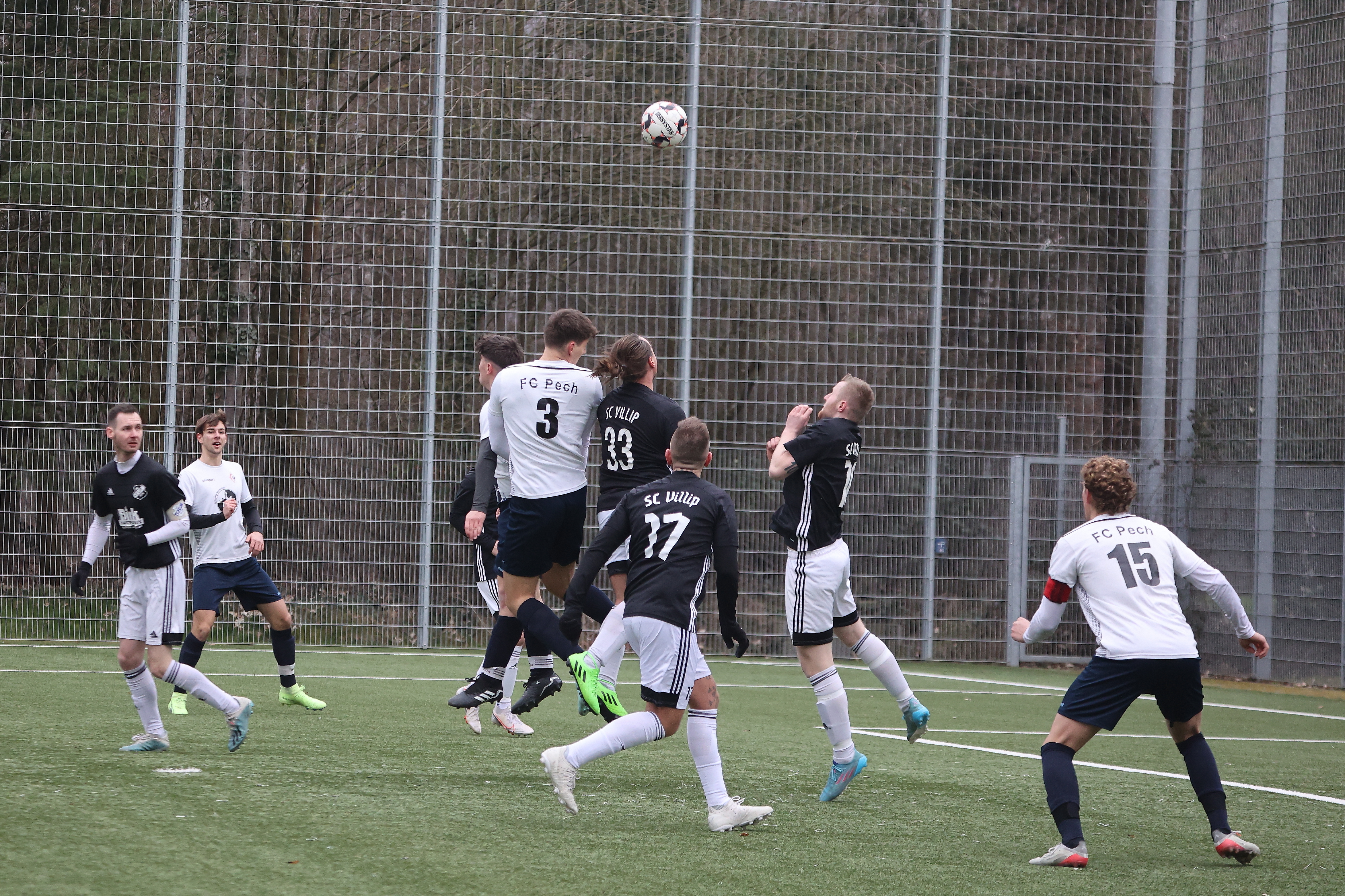 Im heiß erwarteten Derby der ersten Mannschaften gingen die Pecher früh mit 1:0 in Führung, die aber nur kurze Zeit hielt. Ein hammerstarker Freistoß der Villiper Marcel Engels markierte den in der Anfangsphase verdienten Ausgleich. Die Villiper konnten aber insbesondere in der Abwehr nicht die Pecher im Zaum halten, sodass zur Halbzeit bereits eine 4:1 Führung der Gäste auf dem Papier stand. Das erwartete Aufbäumen der Hausherren nach der Pause wehrte nur wenige Minuten bis das fünf und 6:1 der Gäste erfolgte. Danach war der Drops gelutscht und das Spiel plätscherte mehr oder weniger so über die Zeit.