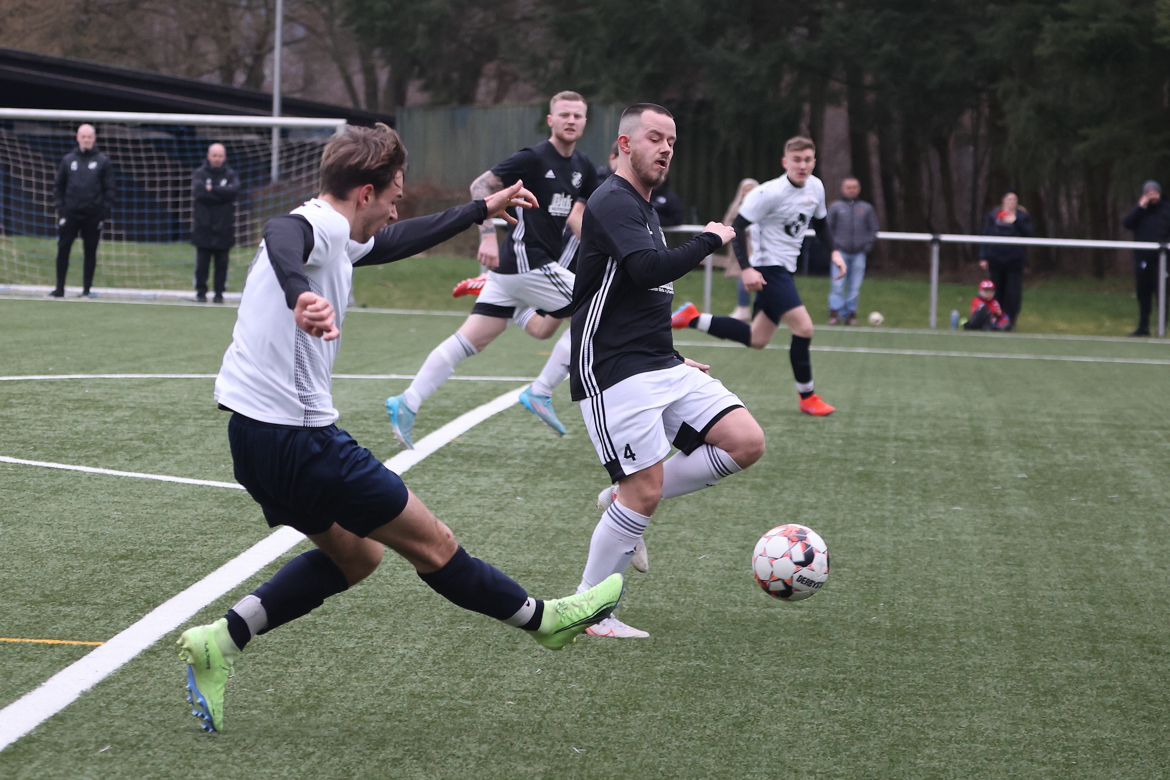 Zunächst gewann die zweite Mannschaft des FC Pech mit 2:0 gegen die Hausherren und bleiben damit dicht hinter Tabellenführer Lessenich im Rennen um den direkten Aufstieg. Beide Tore erzielte Justin Eckstein.