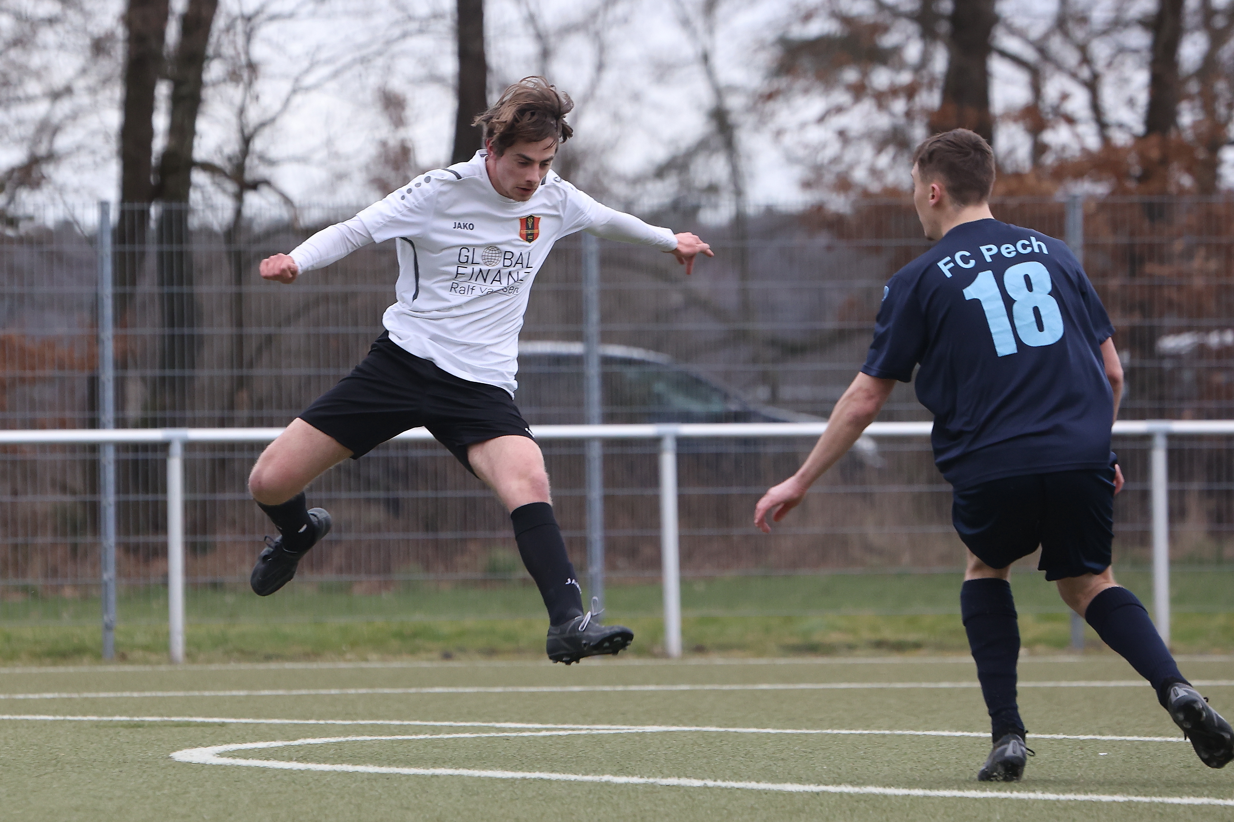 Im Spitzenspiel der Kreisliga B2 Bonn empfing der FC Pech den den Tabellenführer SSV Plittersdorf. Die Pecher gingen dagegen mit einer Serie von 11 ungeschlagenen Partien in das Spiel. Es war das erwartete schnelle und kämpferische Spiel. Beiden Mannschaften schenkten sich nichts. Das 1:0 für die Gäste fiel nach einer Ecke die die Pecher nicht richtig klären könnten, sodaß Alexander Böwing eiskalt den Ball ins Tor drosch.